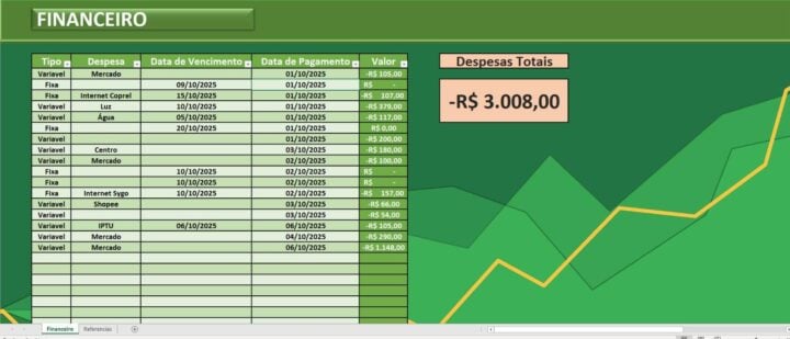 Se você quer controlar suas finanças pessoais, eu posso criar planilhas completas de entradas e saídas, categorizando gastos, monitorando seu orçamento mensal e permitindo que você visualize exatamente onde seu dinheiro está indo. Tudo isso de forma prática e intuitiva, mesmo que você não tenha experiência com Excel.