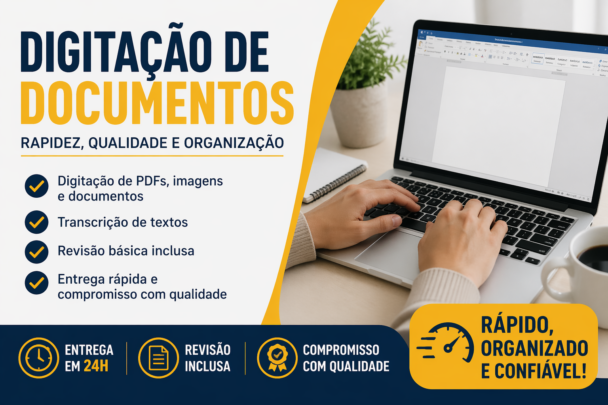Realizo digitação de documentos com atenção aos detalhes e entrega rápida.