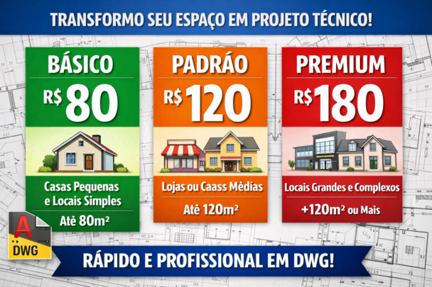 Você me envia uma foto do local com as medidas indicadas (ou um rascunho simples), e eu transformo em um projeto técnico em DWG, pronto para uso profissional.