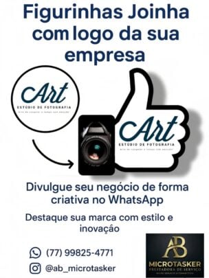 “Quer destacar sua marca de um jeito criativo e moderno? Eu crio figurinhas personalizadas com o logo da sua empresa, perfeitas para WhatsApp. Divulgue seu negócio de forma divertida, marcante e profissional. Entre em contato e garanta já suas figurinhas exclusivas!”