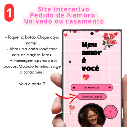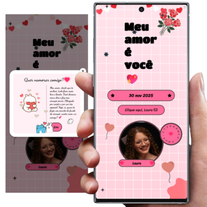 Surpreenda quem você ama com um site interativo totalmente personalizado, perfeito para pedido de namoro, pedido de noivado, declarações românticas ou qualquer momento especial.