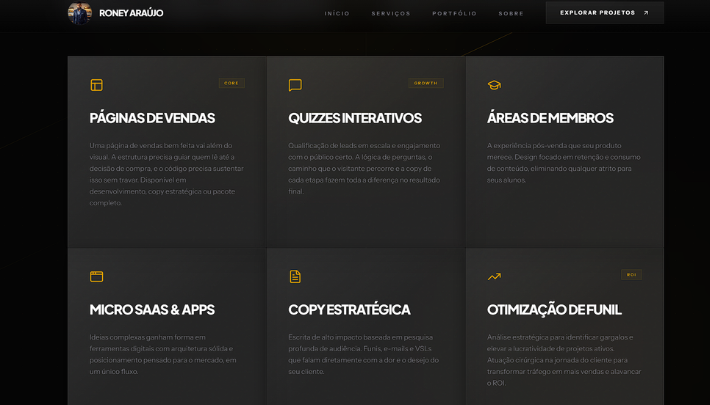 • Entendo o curso e o público antes de escrever uma linha de código. A estrutura da página já sai pensada para gerar desejo e conduzir o visitante até a matrícula.