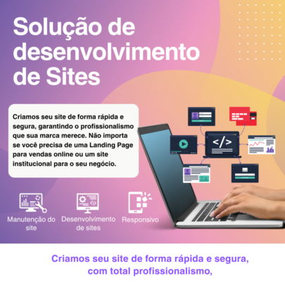 Criamos seu site de forma rápida e segura, garantindo o profissionalismo que sua marca merece. Não importa se você precisa de uma Landing Page para vendas online ou um site institucional para o seu negócio: aqui, a tecnologia trabalha para o seu lucro.