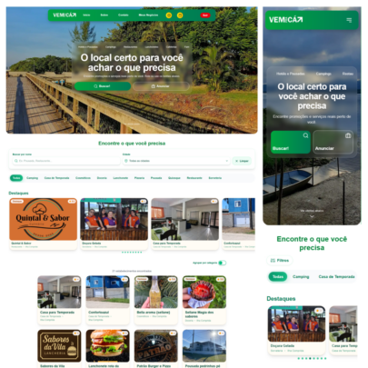 Página Inicial (Home): Focada em conversão e impacto visual imediato.