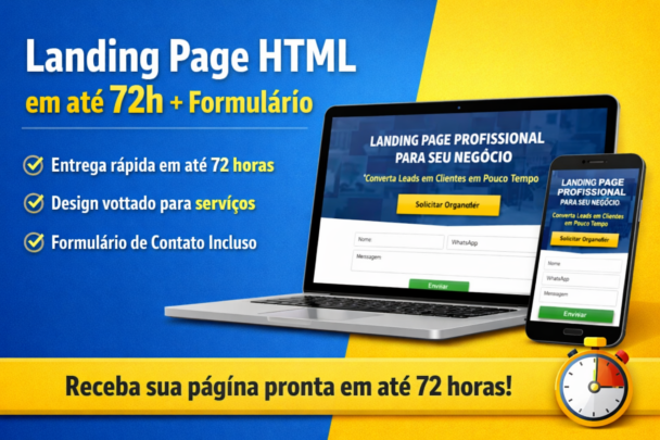 Vou criar sua Landing Page Profissional em HTML (one page), com foco em serviços e conversão: clara, objetiva, leve e pronta para você anunciar no Google/Meta ou divulgar no WhatsApp.