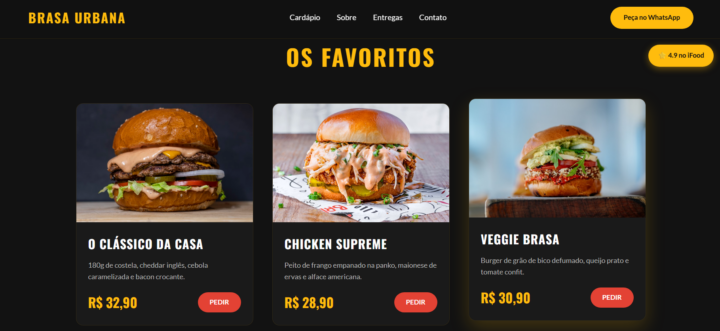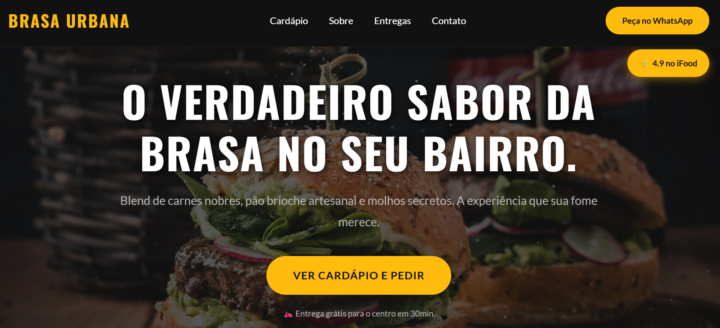 Eu desenvolvo um cardápio digital rápido, com visual moderno e focado em converter vendas. Como desenvolvedor focado em interfaces, sei que a página precisa carregar rápido no 4G e destacar o seu produto, seja uma hamburgueria artesanal ou uma pizzaria.