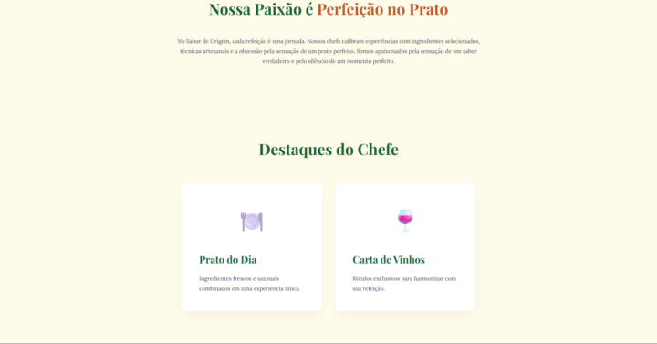 Seções estratégicas: Destaque, Benefícios, Serviços e Contato.