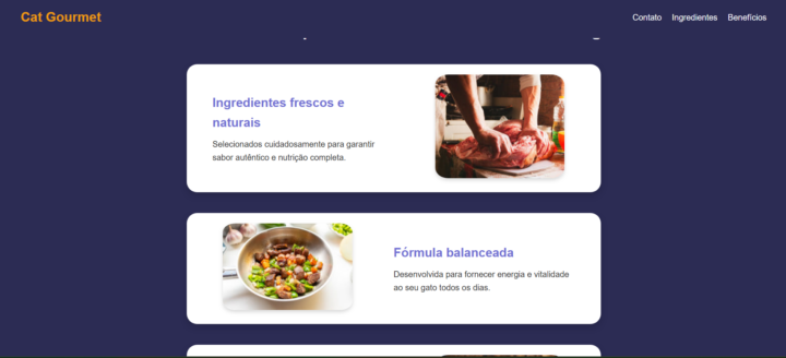 Estrutura organizada (seções como apresentação, benefícios, contato).