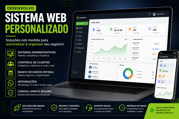 Eu desenvolvo sistemas web personalizados, feitos sob medida para sua necessidade.