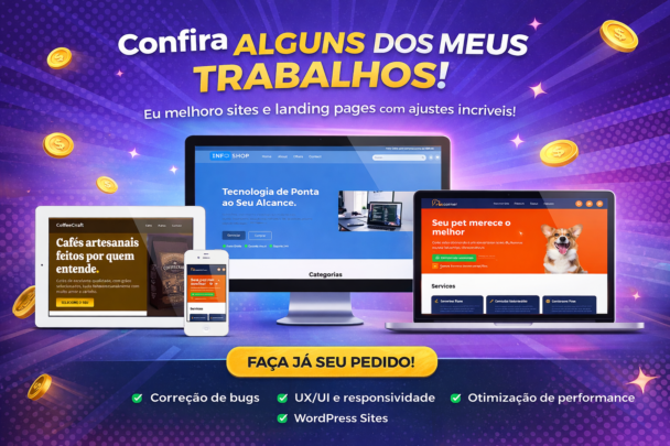 Se o seu site ou landing page está com layout quebrado, lento, com bugs, ou precisa de melhorias de UX/UI para converter melhor, eu resolvo. Este serviço é ideal para quem precisa de um profissional confiável para manutenção contínua ou ajustes pontuais, sem dor de cabeça.