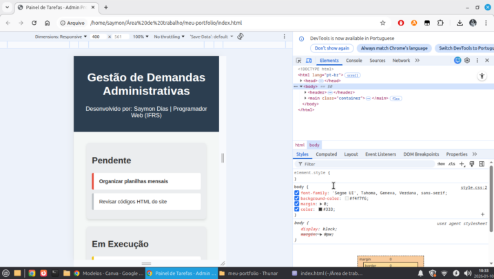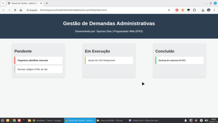 Organização: Entrego um código limpo e organizado, aplicando o rigor que aprendi na minha formação administrativa no IFRS.