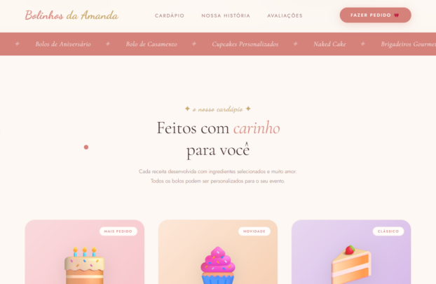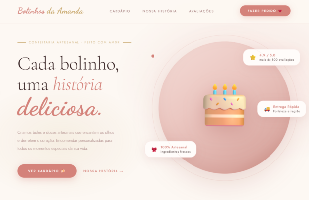 Crio sites modernos, rápidos e totalmente responsivos, funcionando perfeitamente em celular, tablet e computador. Tudo feito sob medida para o seu negócio ou hobby, com foco em resultado e presença online profissional.