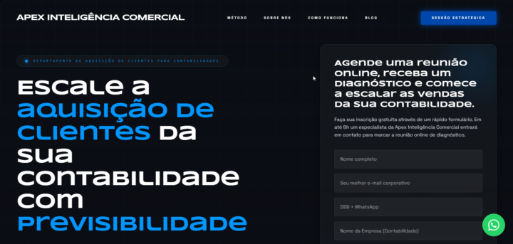 Na APEX Growth Sales, nós não vendemos sites. Nós implementamos a Engenharia de Receita. Nós construímos Páginas de Alta Conversão desenhadas matematicamente para fazer uma única coisa: guiar o seu lead até a compra.