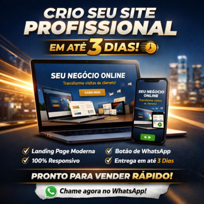 Crio seu site profissional em até 3 dias, pronto para atrair clientes e gerar resultados.