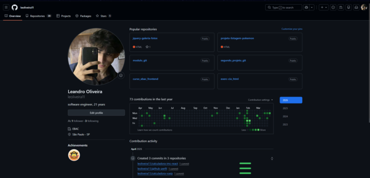 Me chamo Leandro de Oliveira. Atualmente curso programação pela EBAC.