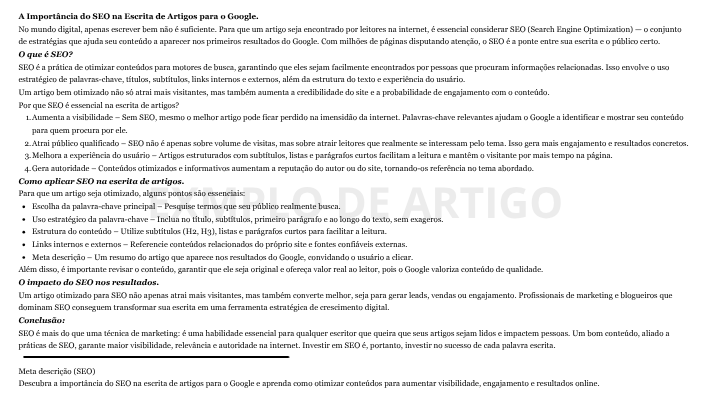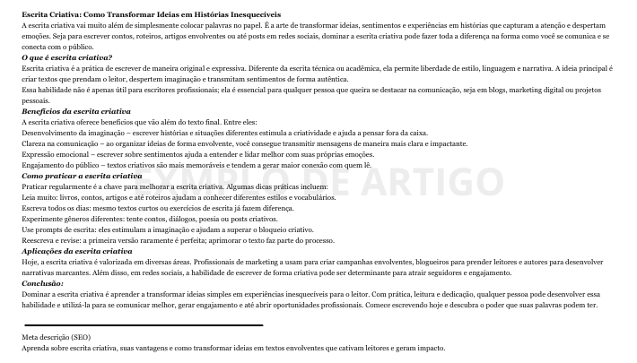 Produzo artigos profissionais, claros e envolventes, ideais para blogs, sites e negócios digitais.