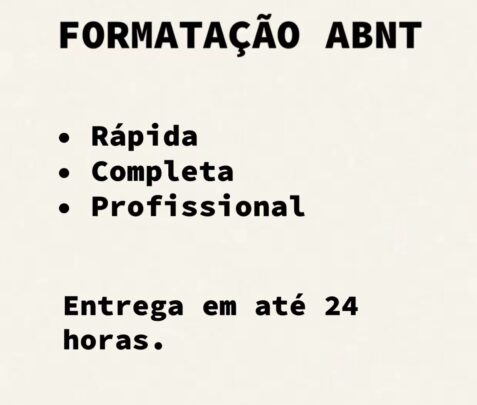 Faço formatação completa em ABNT do seu texto (TCC, artigo, resumo, monografia ou relatório) seguindo as normas mais atualizadas.