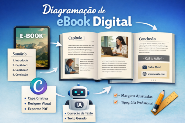 Transformo seu e-book em um produto digital profissional, pronto para vender e gerar autoridade no mercado. Realizo a diagramação completa utilizando Inteligência Artificial e Canva Pro, criando um layout moderno, organizado e visualmente atrativo, além de uma capa profissional que valoriza seu conteúdo e aumenta o impacto visual.