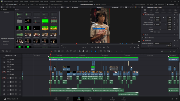 Edição completa com cortes e transições.