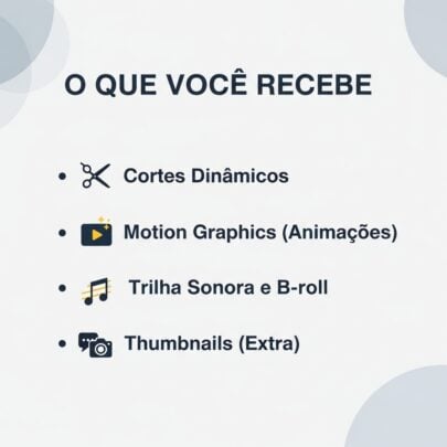 Se você precisa de uma edição profissional, dinâmica e que transmita sua mensagem para o YouTube, TikTok, Instagram (Reels) ou Vlogs, você está no lugar certo.
