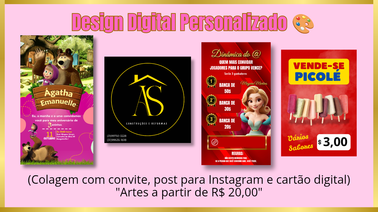 Olá! Sou designer com experiência no Canva e transformo suas ideias em artes que encantam e vendem.