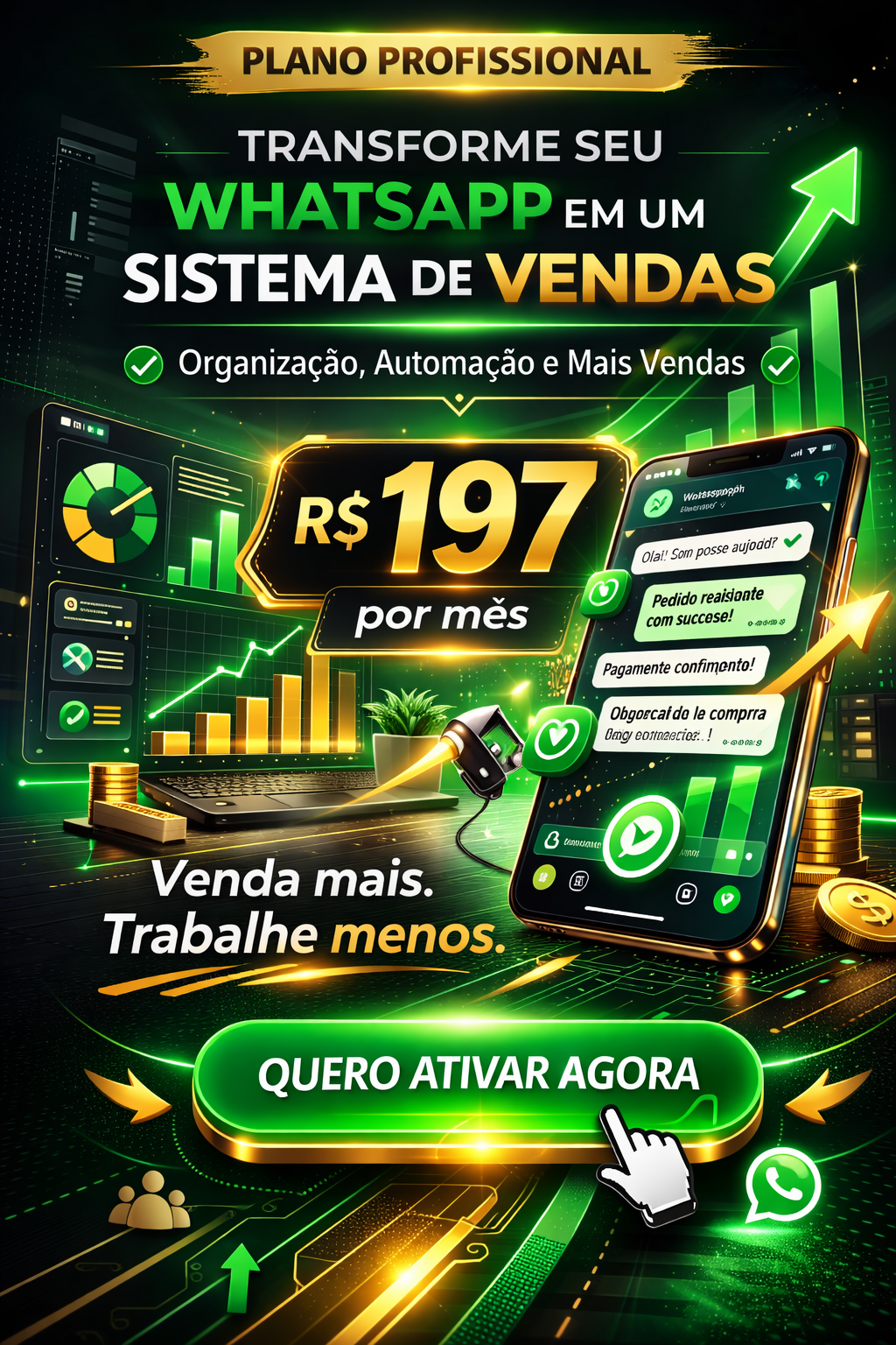 Especialista em automações inteligentes para WhatsApp e processos empresariais. Desenvolvo sistemas com IA que automatizam atendimento, vendas e rotinas internas, reduzindo erros e aumentando lucros. Integrações profissionais, estratégia e foco em resultado real para o seu negócio.