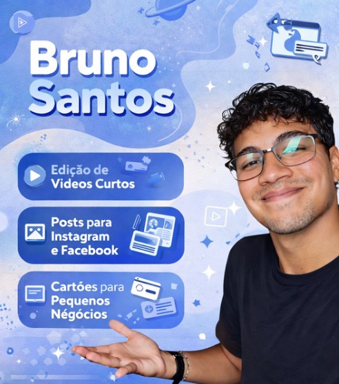 Ajudo pequenos negócios a crescer com conteúdo visual moderno. Edição de vídeos curtos, posts para redes sociais e cartões personalizados. Transformo suas ideias em conteúdo que chama atenção e gera resultados.